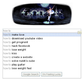 1st, nice header pic :) then some how to question, how to make love n kiss, might be some friends who wanted to feel loved. How to get pregnant n lose weight, most of the women concerns. How to hack facebook? Naughty ppl @_@